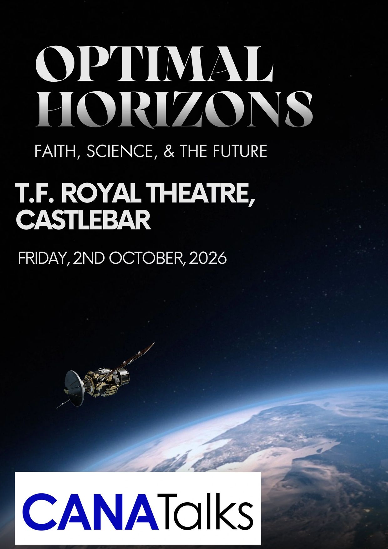 Cana Talks is coming back to the T.F. Royal Theatre, Castlebar in 2026 with our Optimal Horizons show. Optimal Horizons is about faith, science, and the future. We will have world class scientists of faith whose aim will be to inspire the audience in 15 minutes, and who will discuss faith, science, and the future in a special panel discussion. We will have a unique visual piece telling the story of the universe. This will be a big production with great visuals and is the first of its kind. Check out www.adventusacademy.org for more details on Optimal Horizons. MORE DETAILS TO FOLLOW